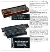 Hugo Bunzel, Wien. Messing-Staffelwalzenmaschine, Serien-Nr. 5100, 8 Einstellschieber, 9-stelliges Umdre- hungszählwerk, 16-stelliger Resultatwerkschlitten, pa- tentierte Kopplung der Zählwerklöschung, funktionsfä- higer Zustand. – Literatur: Martin, S. 210. "Bunzel-Delton" Model 4 Calculating Machine, c. 1908