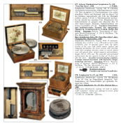 Symphonion Musikwerke, Leipzig. Mit 12 selbsttätig wechselnden Notenscheiben, Plattendurchmesser 54 cm, 120 Töne (komplett), 10 Glockenstimmen (von außen abstellbar), Motor und Mechanik sind im oberen Teil des Gehäuses untergebracht, alle Teile der Mechanik sichtbar, unterer Teil mit 12 Melodienzetteln und Kur- bel zur Anwahl der einzelnen Titel, Münzbetrieb. Der Federwerkmotor ist geeignet zum Abspielen aller 12 Titel hintereinander. Elegantes Nußbaumgehäuse mit Krone, Gesamthöhe 250 cm. – Exzellent restaurierter und funktionierender Zustand. Ein einzigartiges Musikwerk, beeindruckend in Technik, Design und Klang! – Literatur: Bowers, "Encyclopedia of Auto- matic Musical Instruments", S. 230; K. McElhone, "The Disc Musical Box", S. 164.
