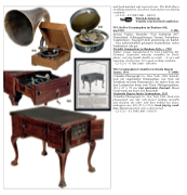 Columbia Phonograph Co., New York, USA. Schreib- tisch mit eingebautem Grammophon, eine Seite mit Schublade mit dem Plattenspieler, die andere Seite mit dem Lautsprecher hinter zwei Türen. Mahagonigehäuse, 101 x 67 x 78 cm. Gut spielender Zustand. Dieses Gerät wurde nur kurze Zeit hergestellt.