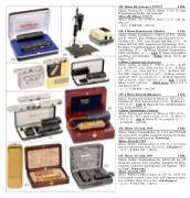 Minox, Gießen. 1) Minox C, 1970/71. (2–3/3) – 2) Mi- nox B, 1966/67, Etui, Meßkette und Schachtel. (2-/3) – 3) Minox EC, 1991, Etui, Kordel und Box. (2/3) – 4) Minox MX-Set, 2003, komplett mit Verpackung. (2/2) – 5) Minox Vergrößerungsgerät Modell III, 1963, letzte Ausführung. (2/–) – 6) Minox Minomat, Diaprojektor, 1962, mit Koffer. (3/–) – Und: 7) Minox Reprodukti- ons-Stativ, mit Schachtel. – Dabei: Minox 110 S und Minor CD70.