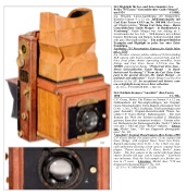 C.P. Goerz, Berlin. Für Platten im Format 9 x 12 cm, Nußbaumholz mit Messingbeschlägen, mit Original- Goerz-Messingobjektiv Extra-Rapid-Lynkeioskop Serie G No. 1, No., 15422, Irisblende, Triebverstellung (sehr guter Zustand!), Original-Herstellerschild "Patent An- schütz C.P. Goerz, Berlin", Rahmensucher. – Die erste Kamera der Welt mit Schlitzverschluß (1 Bändchen gerissen, kann aber restauriert werden). – Extrem selte- ner Meilenstein der Kamerageschichte. Nach 17 Jahren erst zum 3. Mal auf einer "Breker"-Auktion. – Litera- tur: Michel Auer, "150 ans d'appareils photographi- ques", Nr. 162.