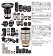 1) Meyer, Görlitz. Lydith 3,5/30 mm. – 2) Enna, Super Lithagon 2,5/35 mm. – 3) ISCO, Westron 2,8/35 mm. – Meyer, Görlitz. 4) Primagon 4,5/35 mm. – 5) Telefogar 3,5/90 mm. – 6) Orestor 2,8/100 mm. – 7) Trioplan 2,8/100 mm. – 8) Orestor 2,8/135 mm. – 9) Primotar 3,5/135 mm. – 10) Feinmes, Dresden. Bonotar 4,5/105 mm. – 11) Soligor, Japan. Tele-Auto 2,8/135 mm, auto- matic. – Zeiss, Jena. 12) Sonnar 4/135 mm. – 13) Son- nar 4/135 mm, automatic. – Lenses mostly in good con- dition, some with case or box.