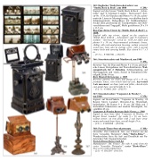 Brewster-Typ, für Dias und Photos 9 x 18 cm, prismati- sche Linsen, Holzgehäuse mit Wurzelholzfurnier, Wal- zenspielwerk für 2 Melodien, Schlüsselaufzug, auf Messinggelenk und -säule, Sockel in Puttenform (Me- tallguß), Höhe 54 cm.