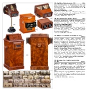 "George Knight, London", früher englischer Tisch- Stereobetrachter für 9x18cm-Photos und -Dias, Keil- prismen in neugotischer Fassung, fokussierbar (ver- schiebbar), Gehäuse mit Wurzelholzfurnier, auf Mes- singgelenk, gedrechselter Säule und Kästchen mit Schublade für die Bilder, Gesamthöhe 43 cm. Eine sehr frühe Ausführung des Cosmorama.