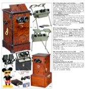 1) China, for McDonald's Corp. "Mickey Mouse", 11 2/3 x 8 1/3 in., with 6 stereo views from Disneyland Paris. (3+/2) – And: 2) David White Instrument, USA. Realist Stereo Viewer, not tested. (3+/–) – In addition: "Vis-Color", slide viewer, bakelite, for slides of 5 x 5 cm, with box. (2/2)