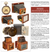 C.P. Stirn, Berlin. Nr. 2185, D.R.P. 38391. Für 6 Auf- nahmen Ø 4,1 cm, Messing, brüniert, Größe der Kamera Ø 14,8 cm, Periskop-Objektiv, Guillotine-Verschluß, läuft sehr gut! – Mit Original-Kasten, Original- Anleitung sowie 2 belichteten Scheiben mit jeweils 6 Aufnahmen. So komplett noch nie angeboten! – Lite- ratur: Michel Auer, "150 ans d'appareils photographi- ques", ähnlich Nr. 65.
